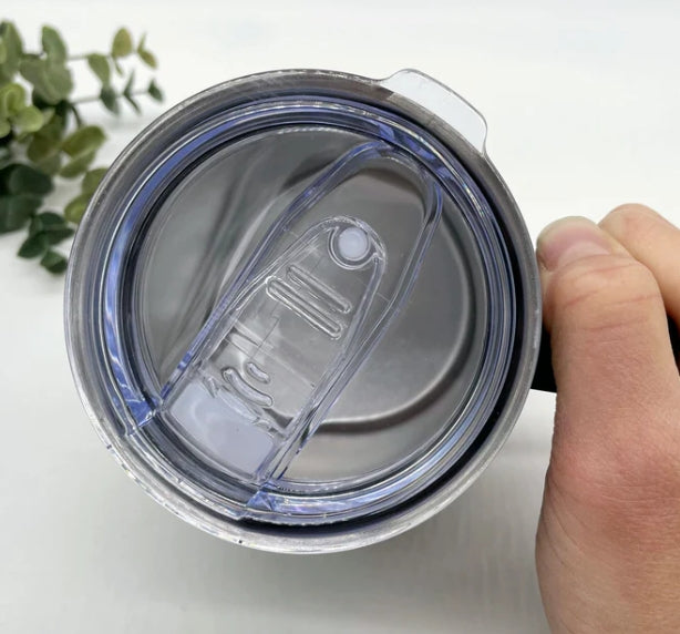 Each cup comes with a sliding plastic lid and rubber seal to help prevent spills. We can personalize them with engraving, making them a unique gift or a must-have for your own collection.