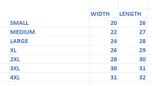Measurements are when laid flat. Measurements are from shoulder seam to hem and chest (arm-pit to arm-pit seam)