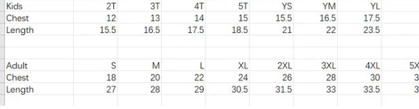 Measurements are the tee when laid flat. Measurements are from shoulder seam to hem and chest (arm-pit to arm-pit seam)