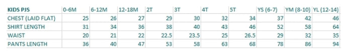 Please note: Size charts are shown in the product images. They display flat-laid measurements in CM. For the best fit, measure one of your own tops and bottoms and compare to the chart provided.